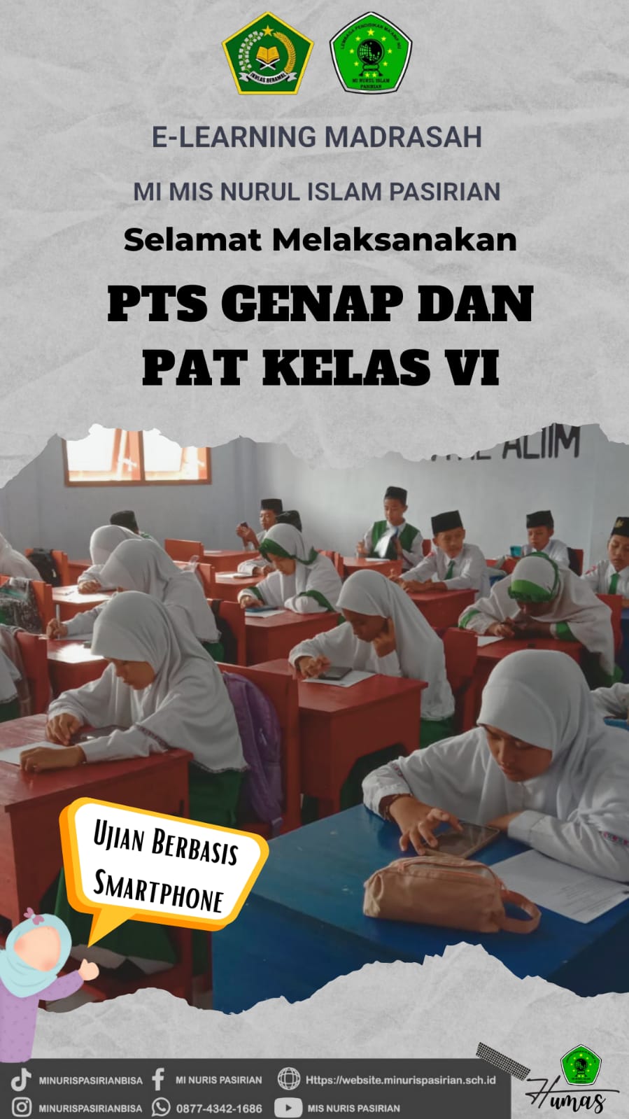 Selamat melaksanakan PTS genap dan PAT kelas 6 yang dilaksanakan secara online berbasis smarphone di lembaga MIS NURUL ISLAM PASIRIAN. Semoga diberi kelancaran dalam pelaksanaannya.